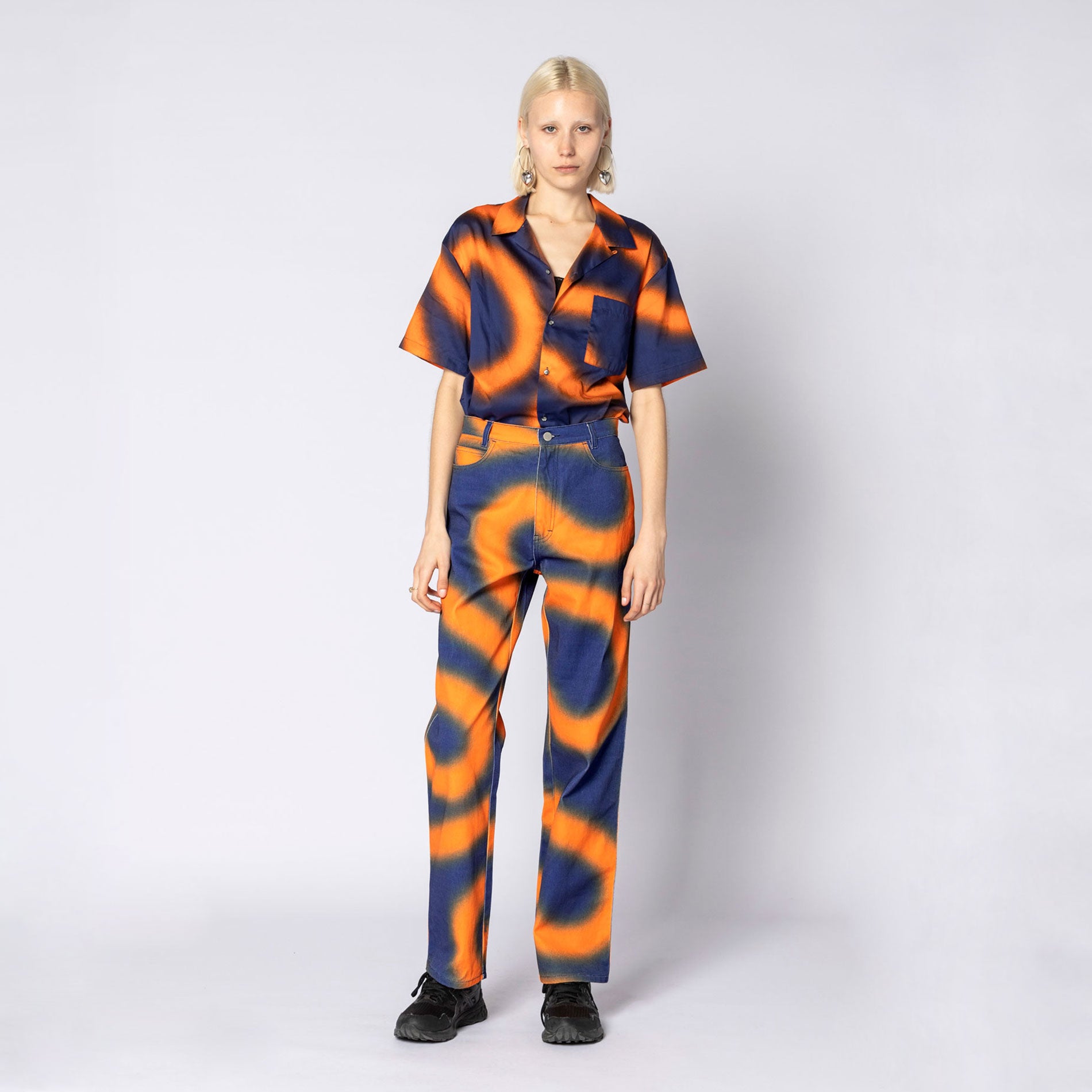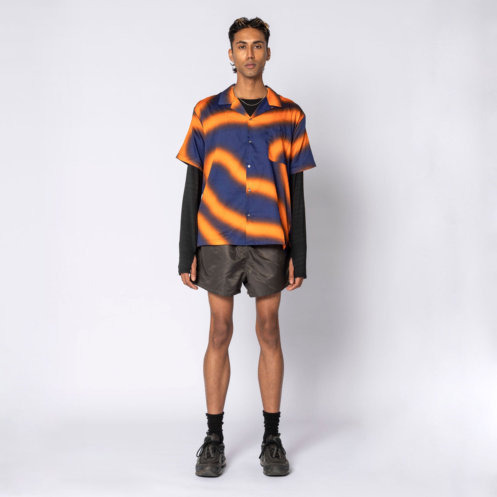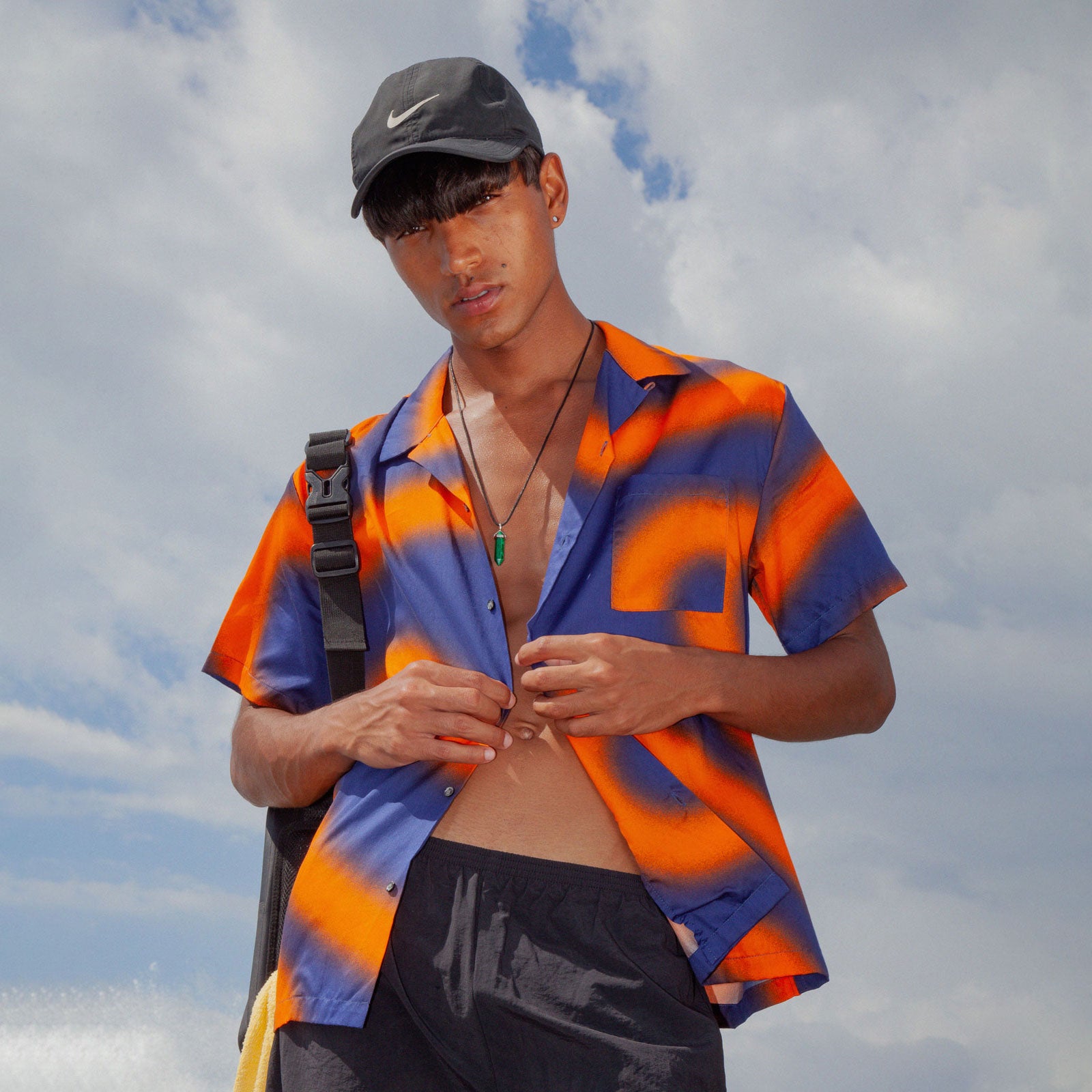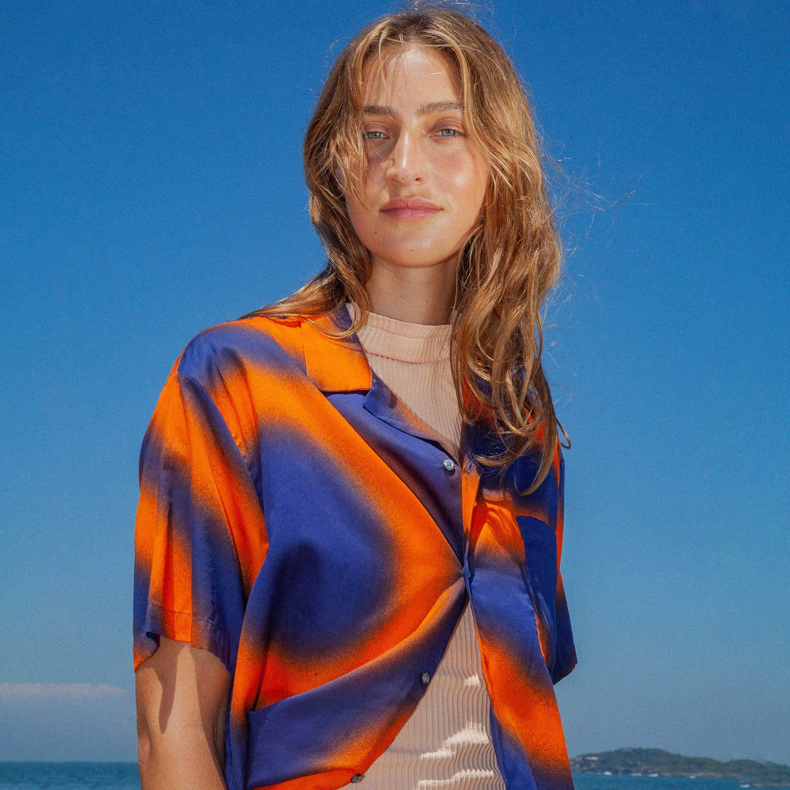Unisex Hawaiian shirt. Boxy fit, short sleeve shirt with a button up closure and camp collar. Made from 100% cotton in an original Double Rainbouu digital print.
