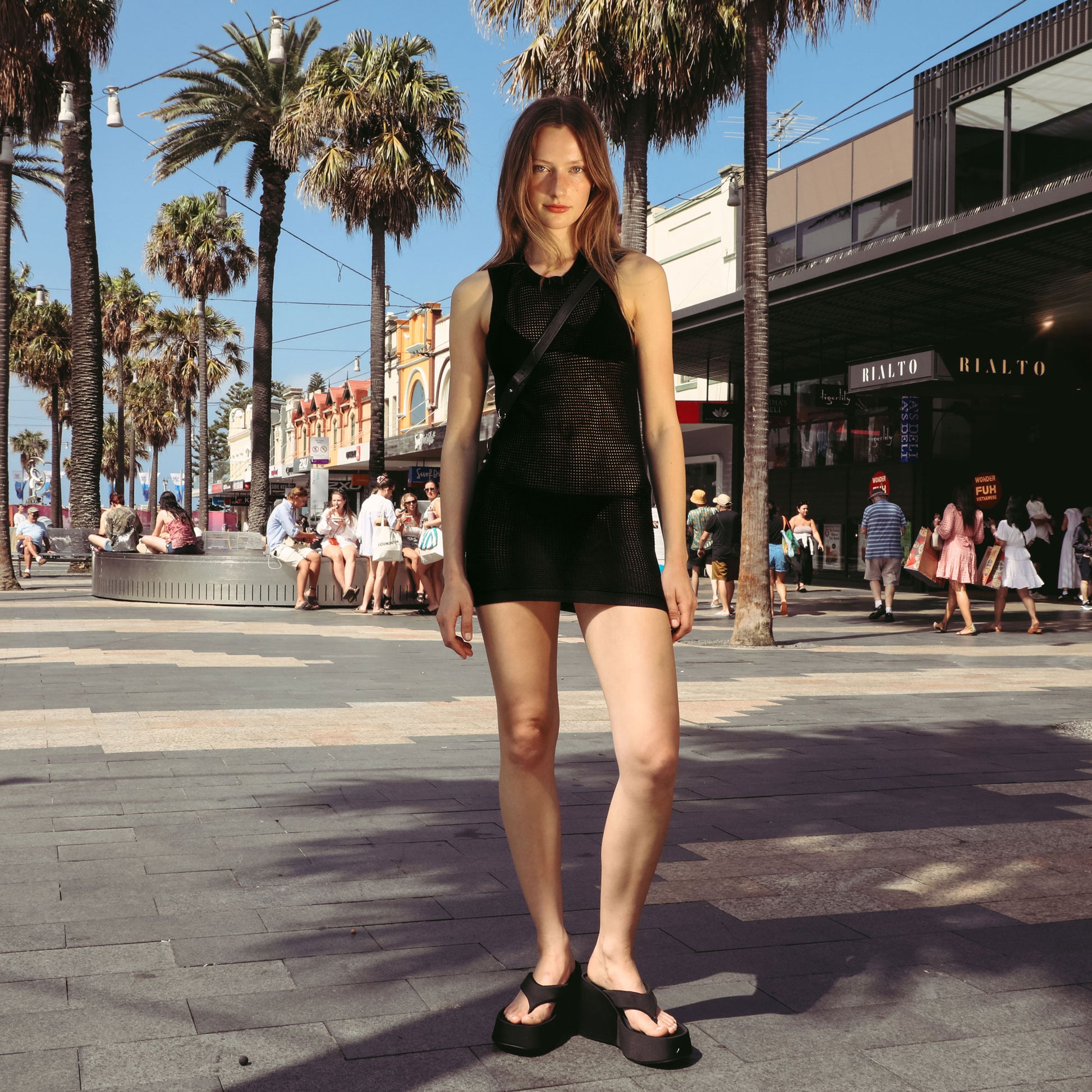 Our female model is 5'10.5" and a size au 8 with 32" bust, 25" waist and 35.5" hip.