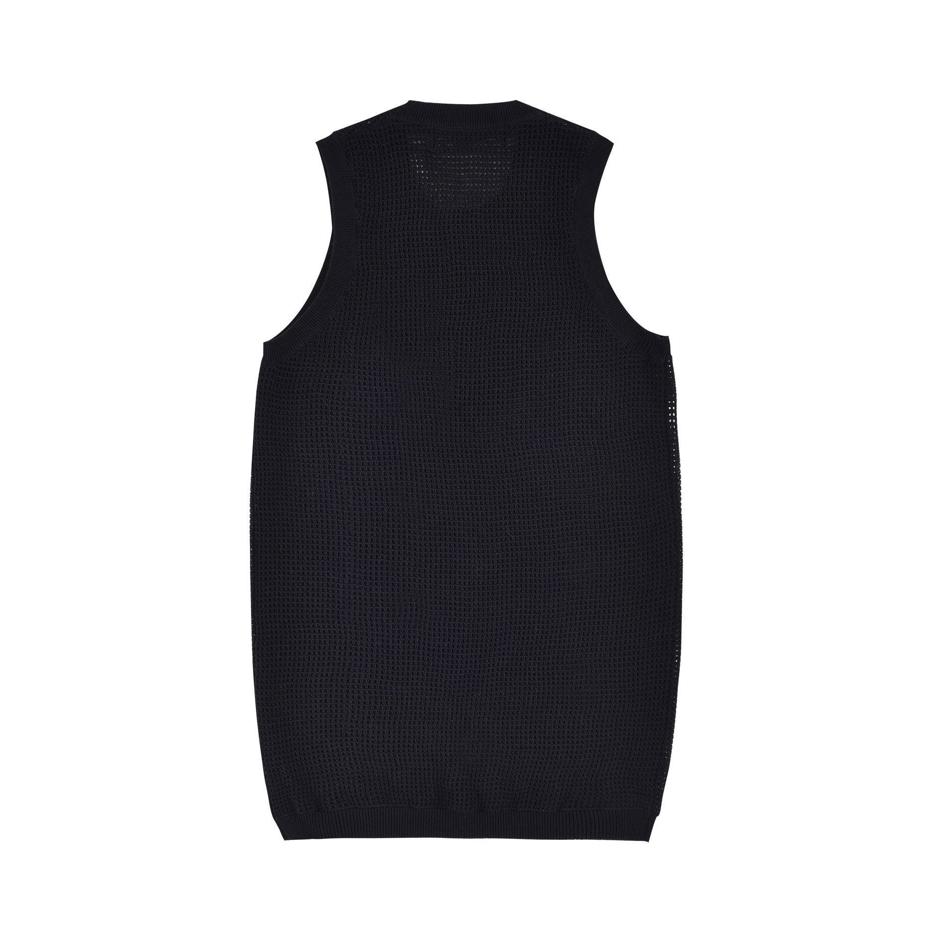 Semi-sheer cotton mesh tank dress in black. Relaxed fit with a contrast rib neckline and hem. Made from 100% Cotton.