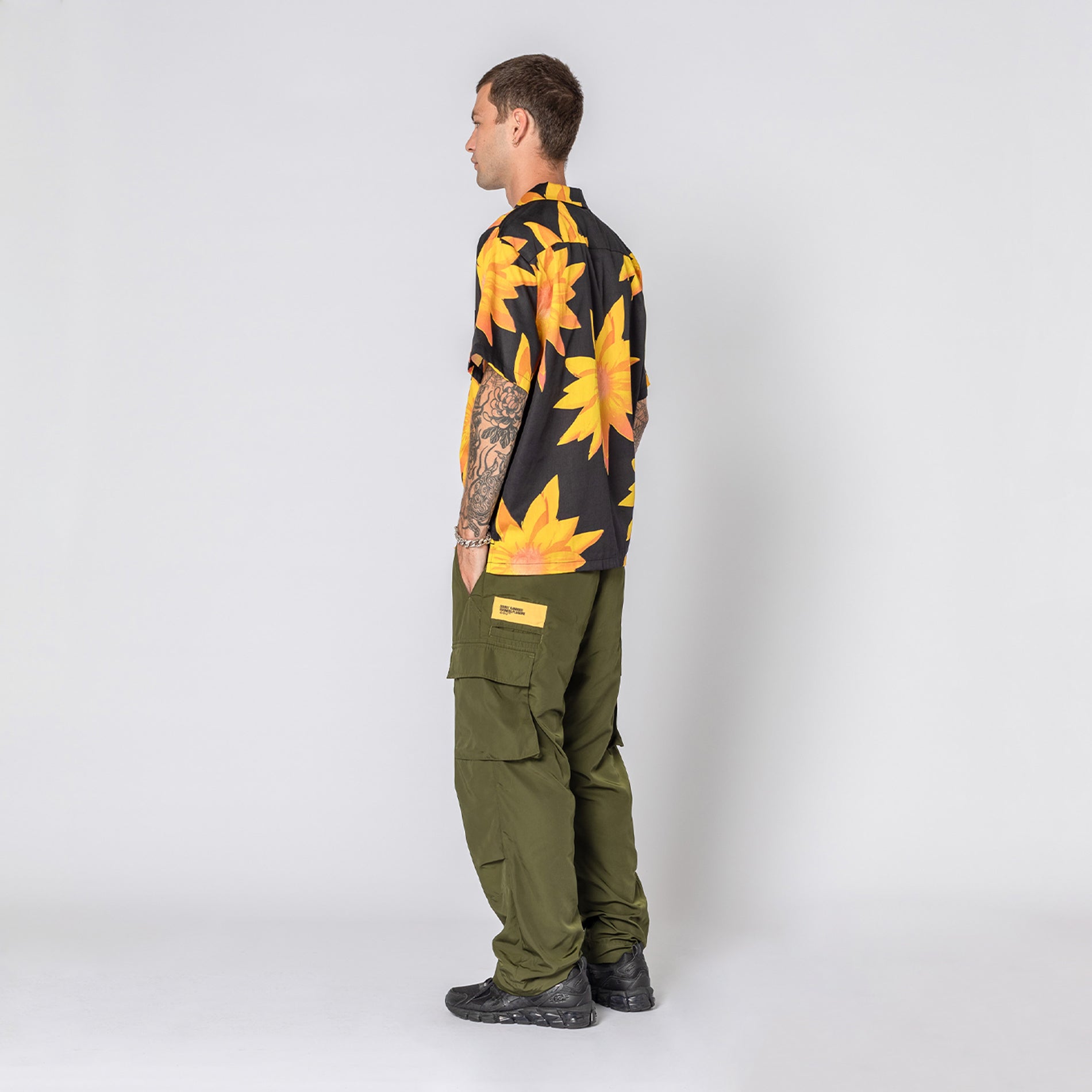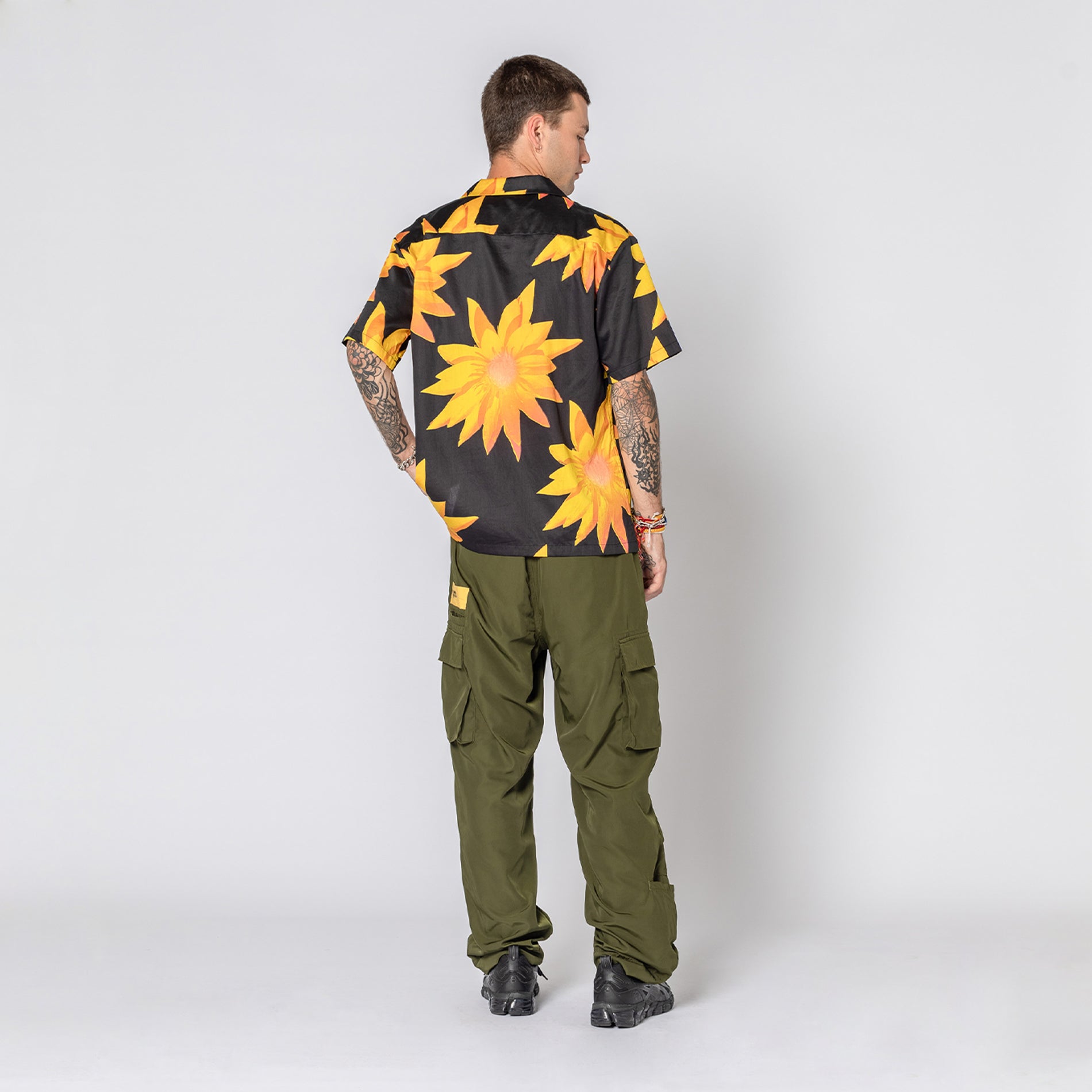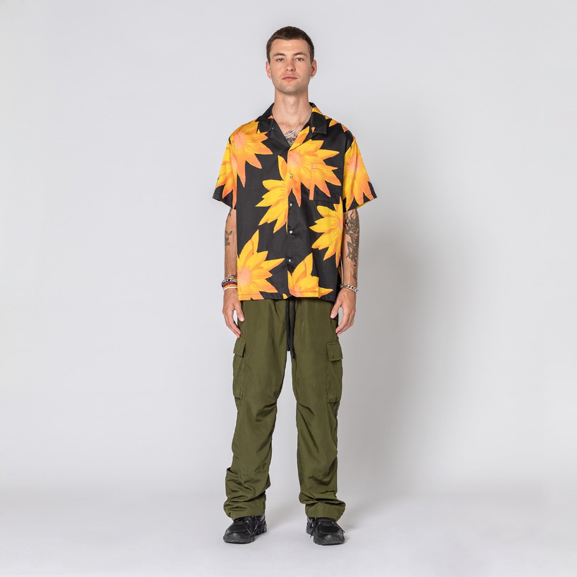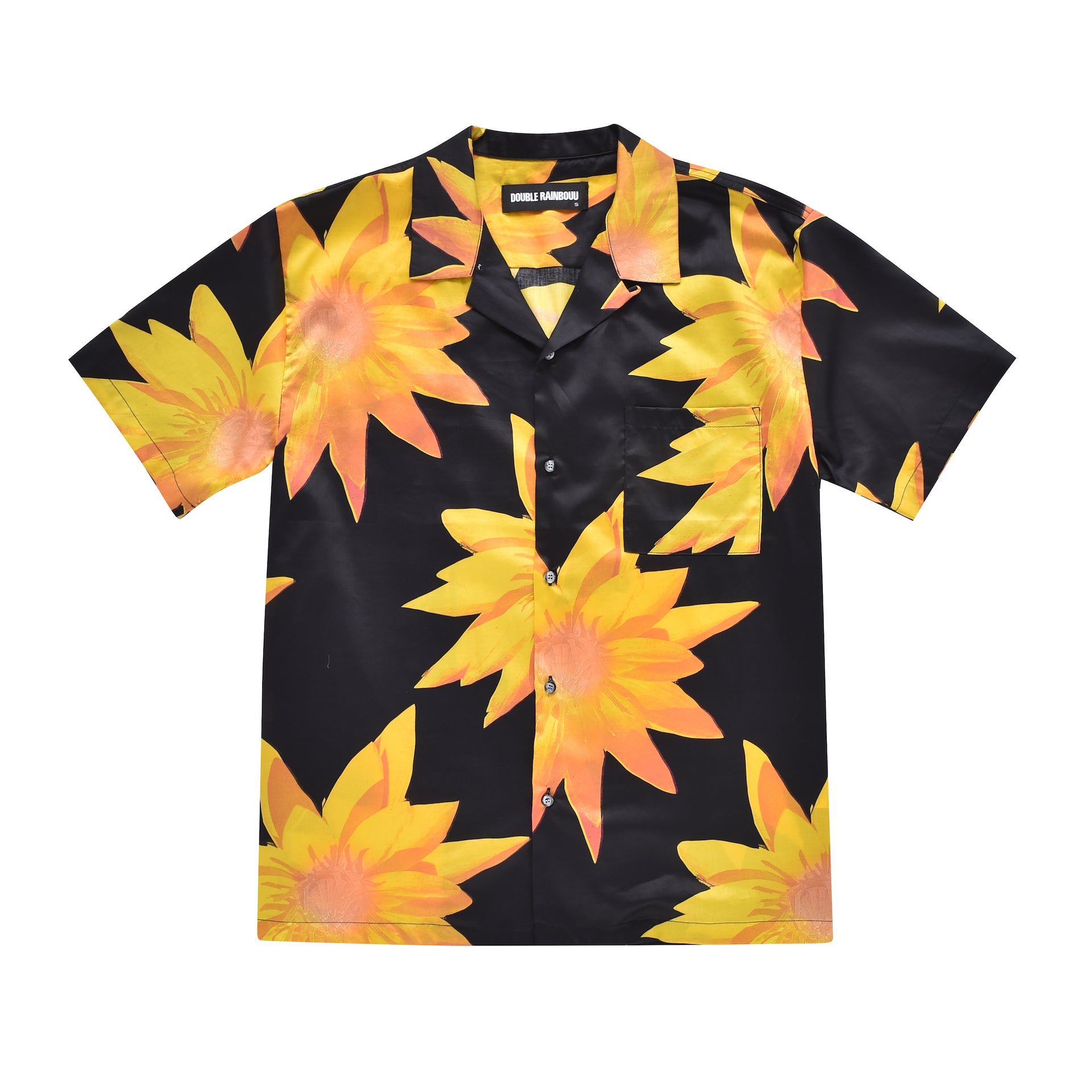 Unisex Hawaiian shirt. Boxy fit, short sleeve shirt with a button up closure and camp collar. Made from 100% cotton in an original Double Rainbouu digital print.