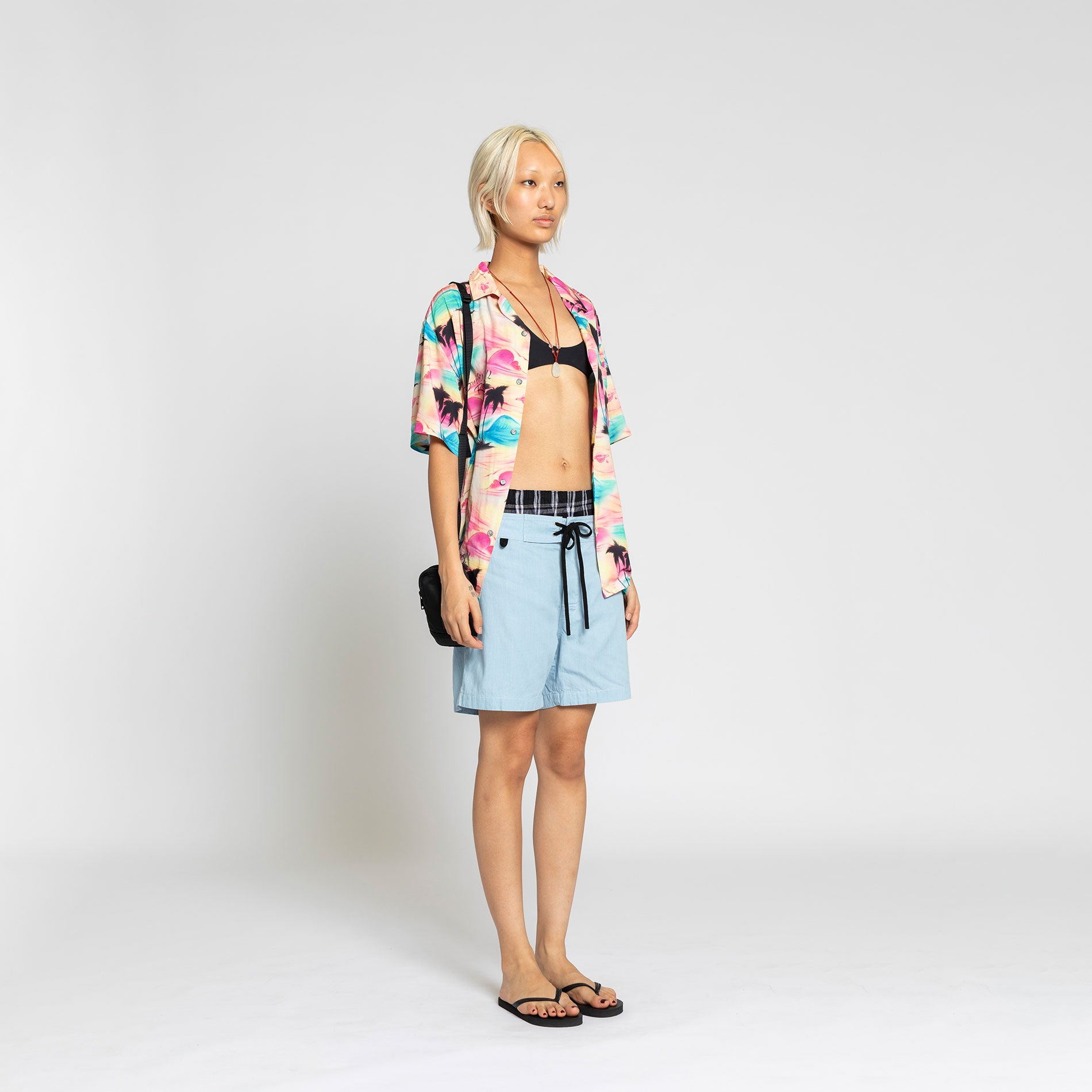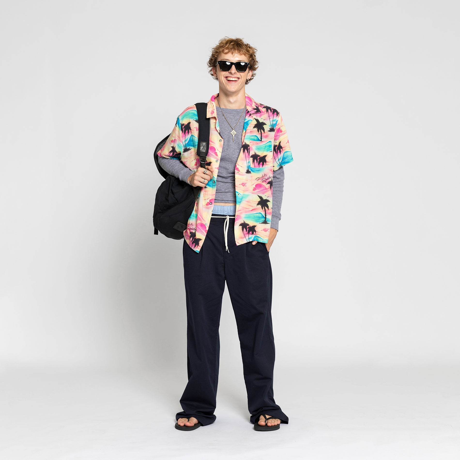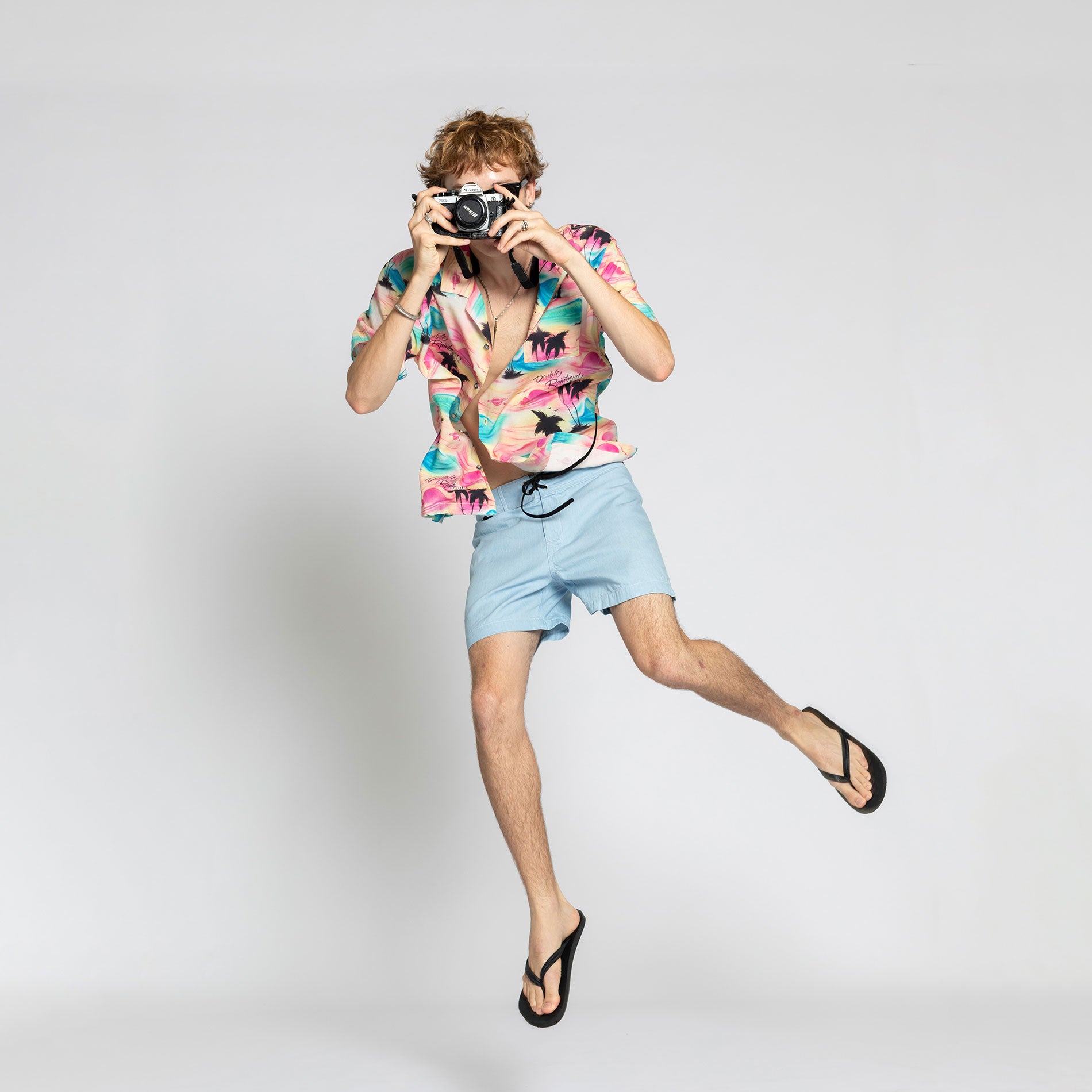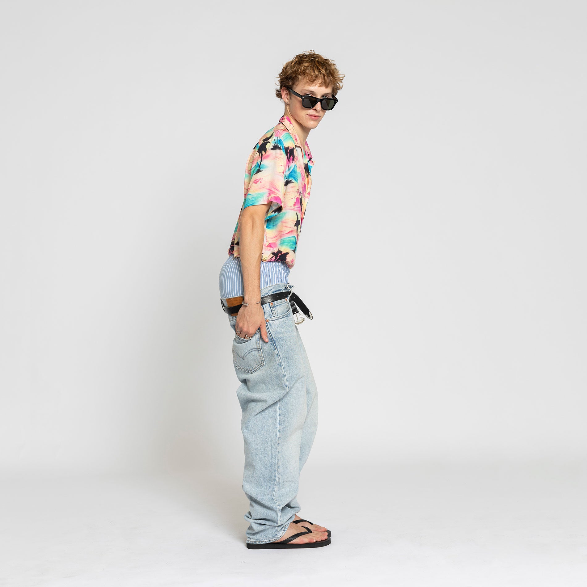 Unisex short sleeve Hawaiian shirt with boxy fit, camp collar with an original digital print. Made from 100% EcoVero™ rayon.