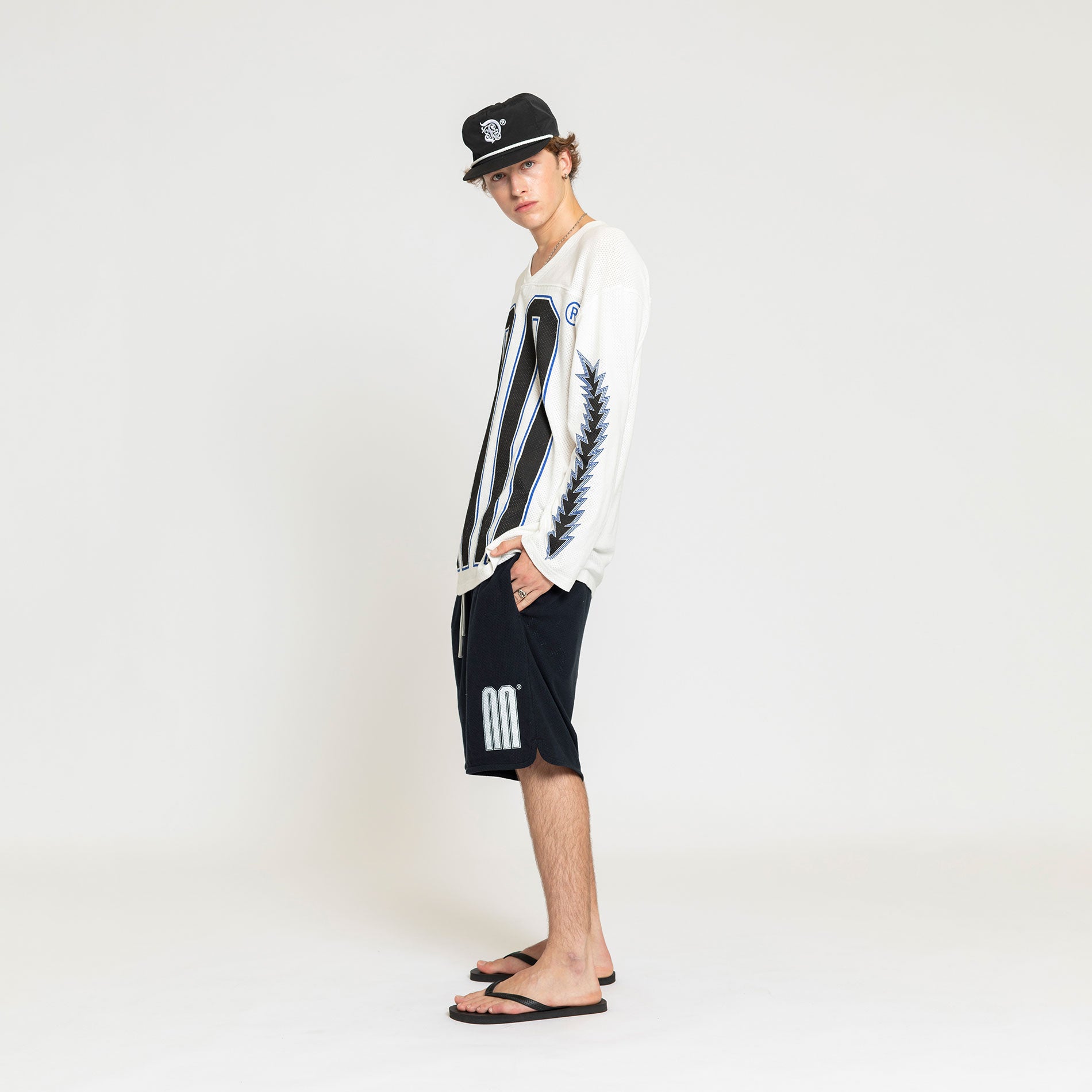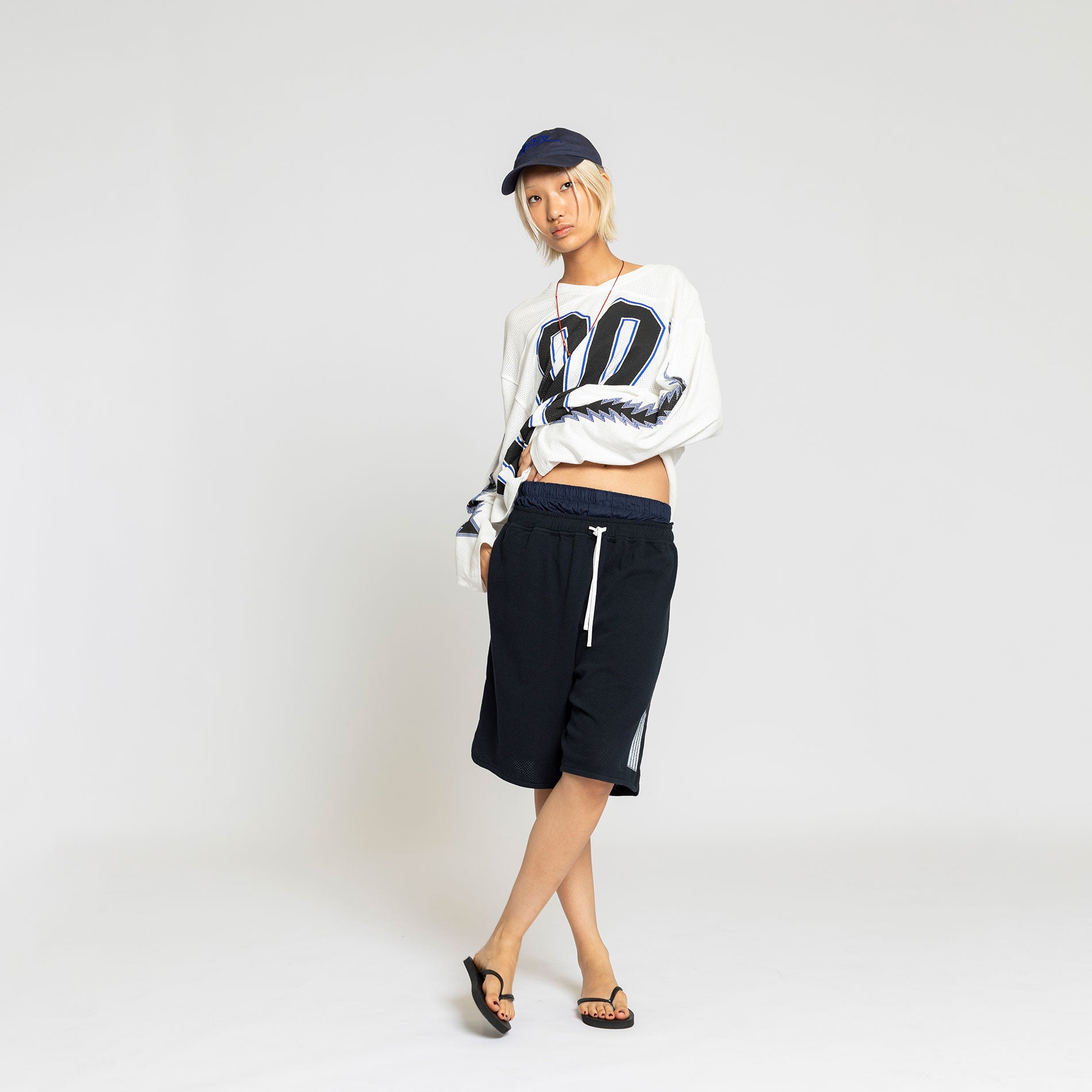 Mesh ball short from our DR Full Spectrum Active line. Baggy basketball style short in black mesh with contrast white DR (UU) graphic. Elasticated waistline with drawstring. Made from 100% cotton mesh.