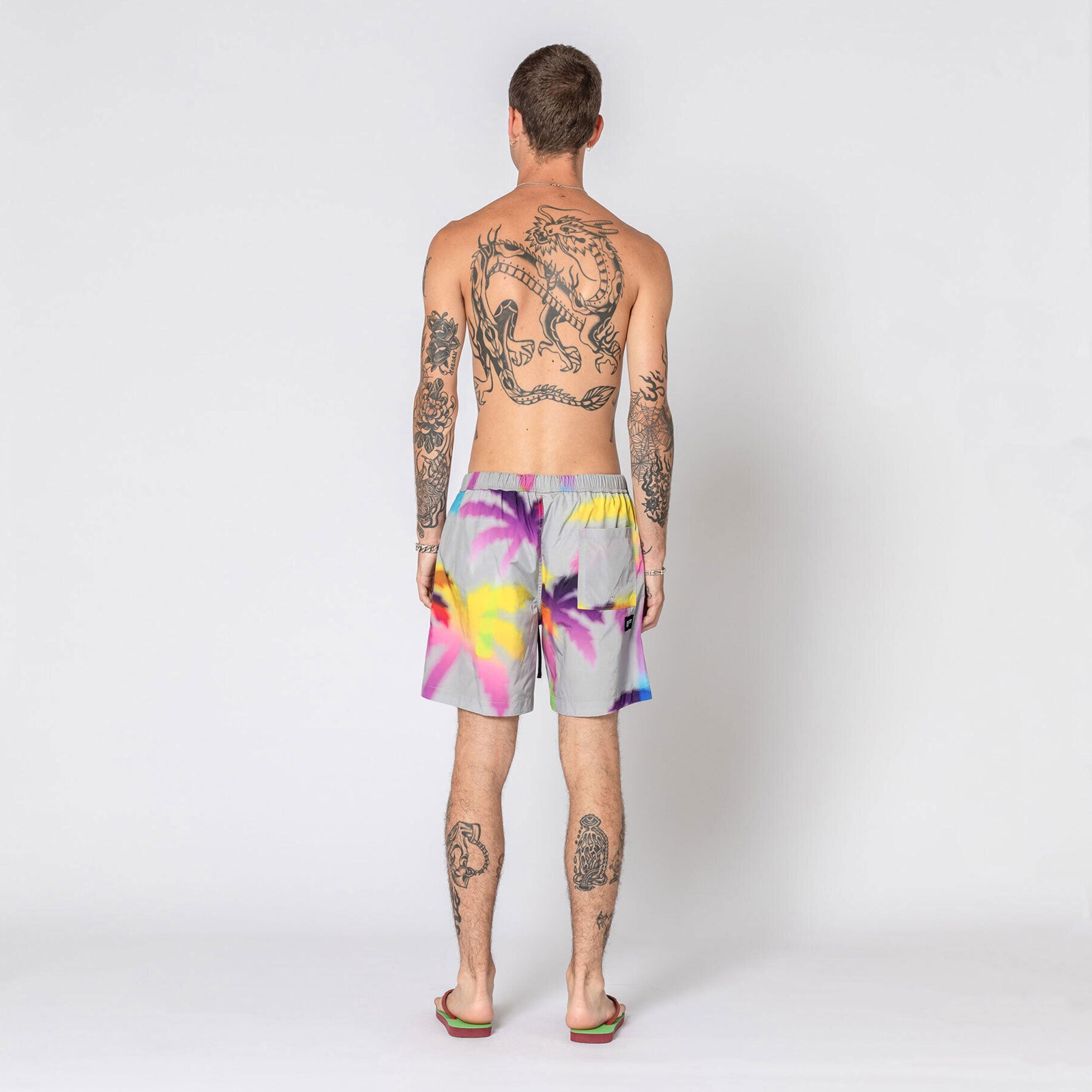 16.5" length swim shorts. Relaxed cut with an elasticised waistband, an extra long drawstring, mesh liner and three pockets. Made from 100% Polyester in an original DR digital print.